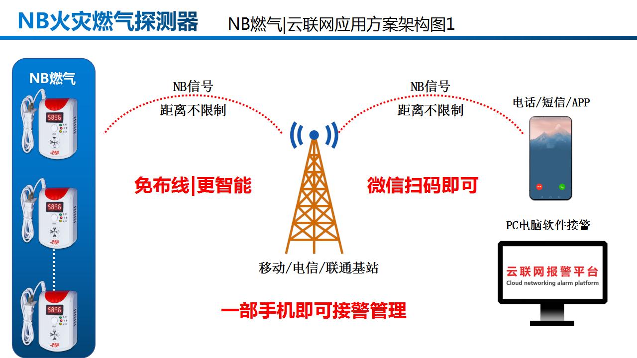 低成本:基于NB-IoT无线网络通讯方式,免布线,且不需要传统的报警主机即可联网。