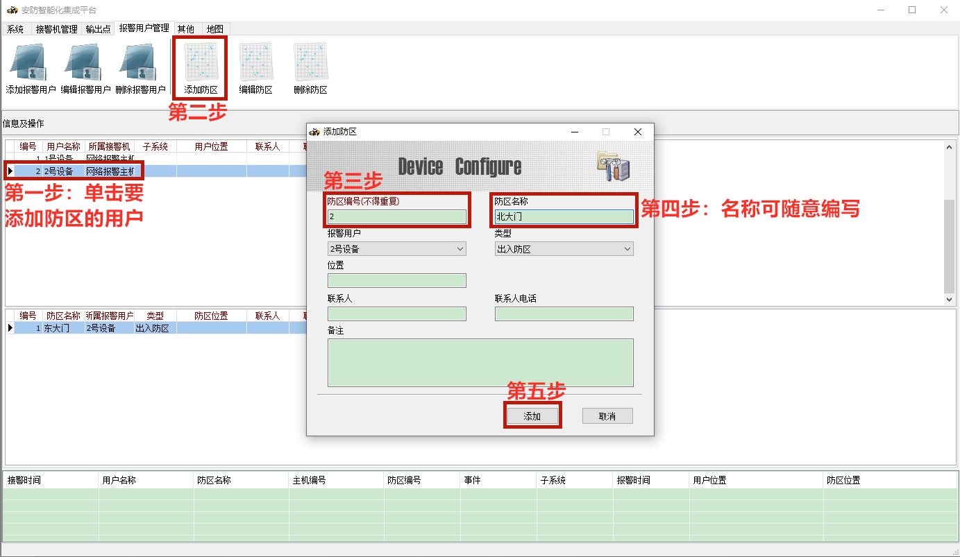 2.5 增加报警用户防区资料