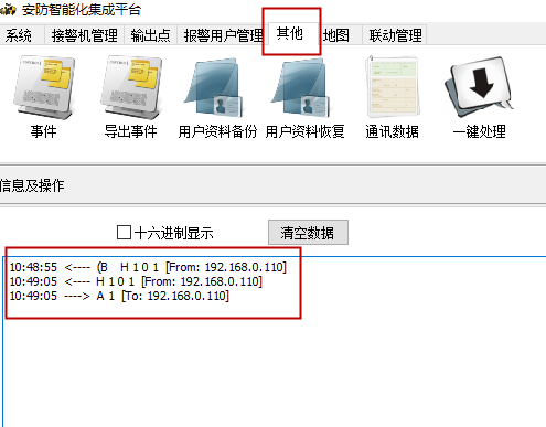 如下图,证明报警主机与2016软件已连接成功,可以进行软件远程“布/撤防”操作了。